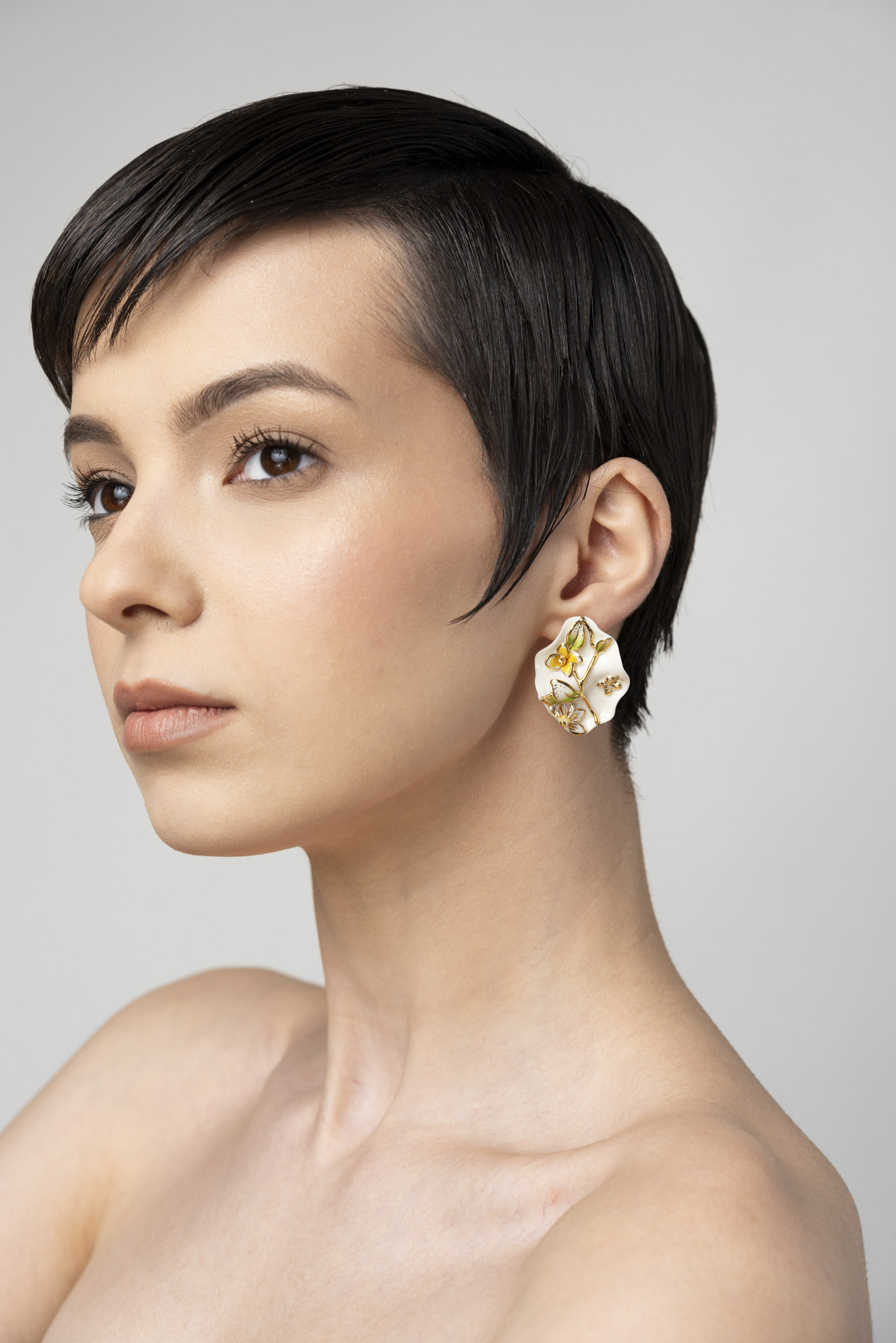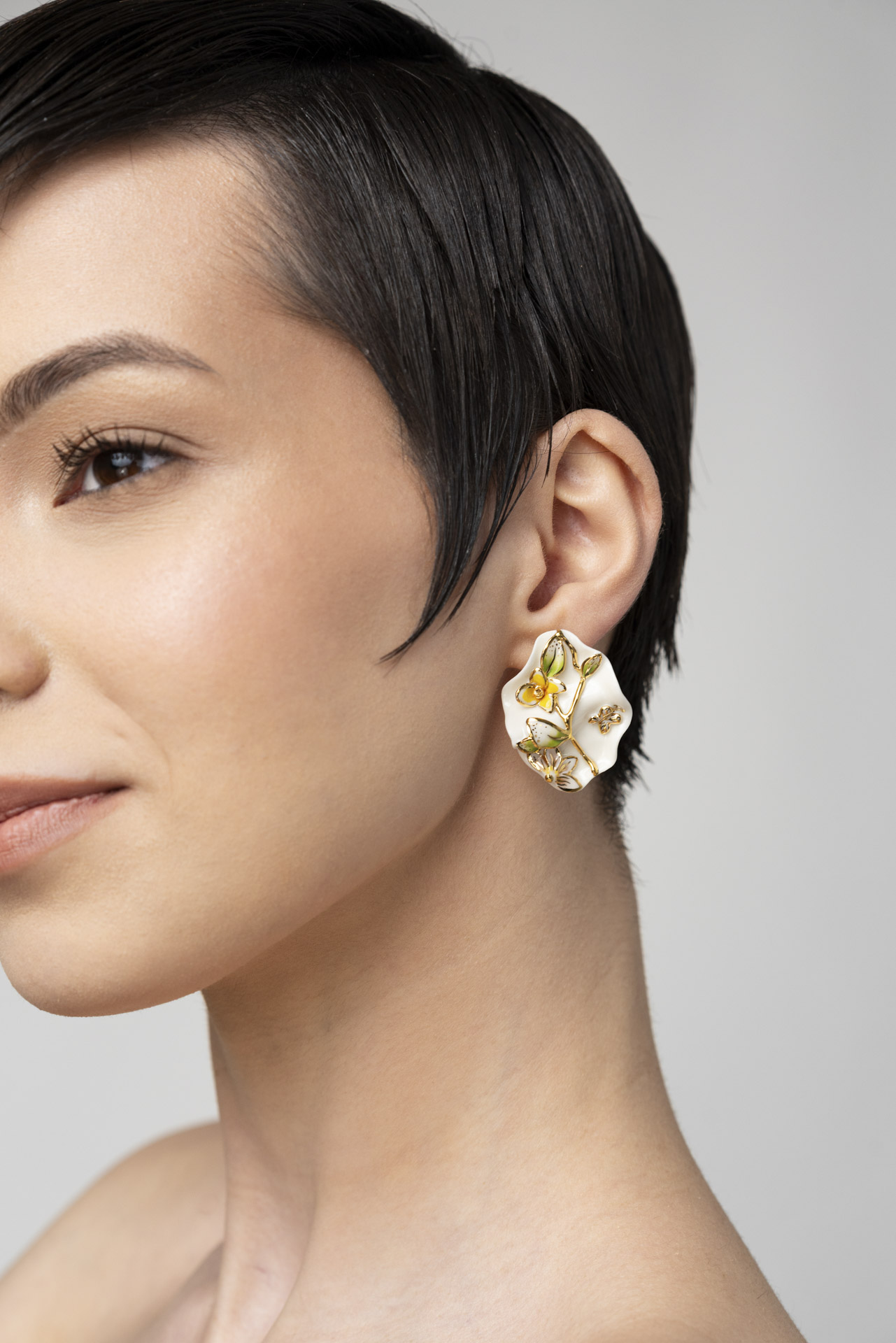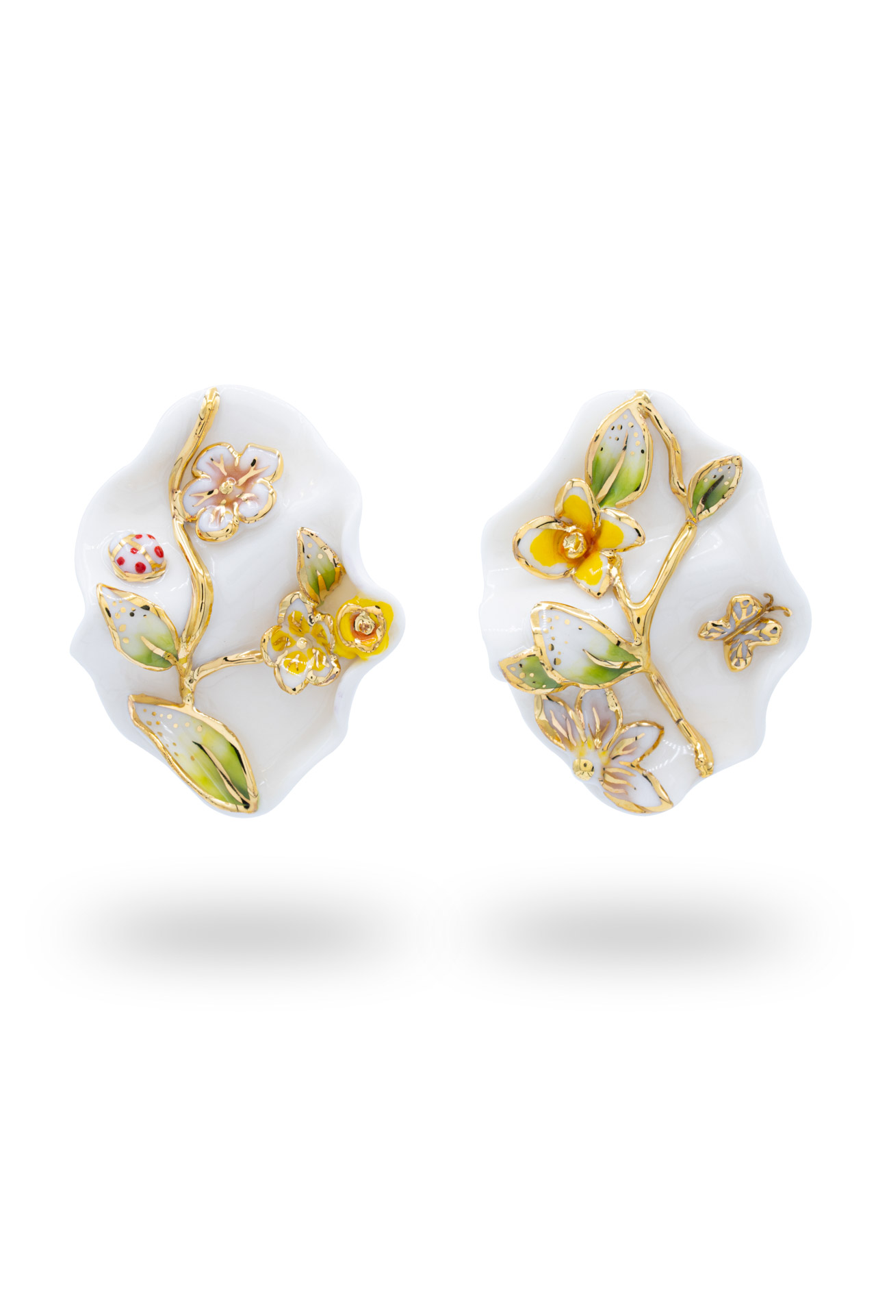The Mother Nature Collection celebrates the delicate beauty of nature through entirely handcrafted porcelain jewelry. Each creation is carefully shaped and hand-painted, highlighting the elegance of floral motifs, harmoniously complemented by nature-inspired details such as butterflies, ladybugs, birds, and fruits.