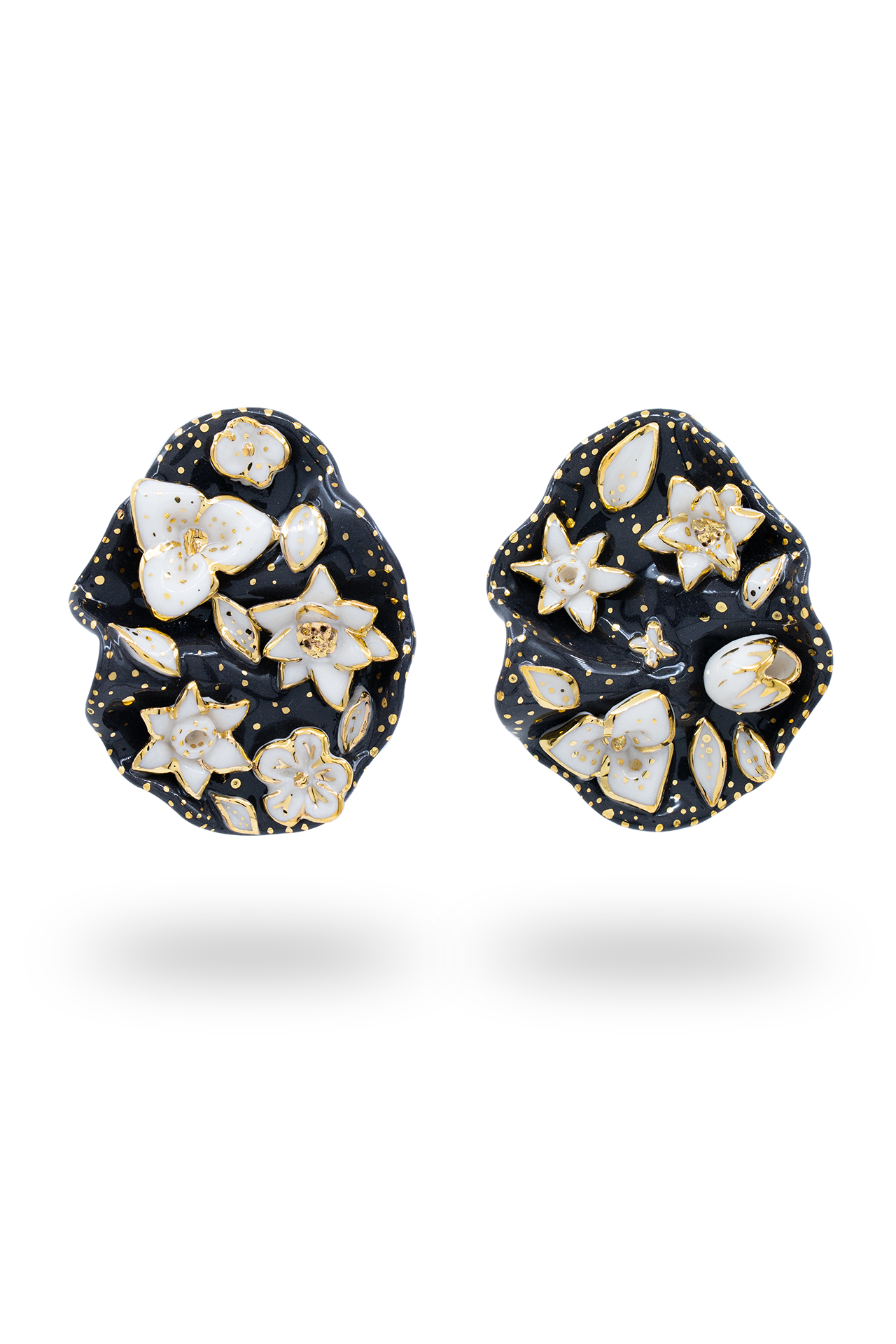 The Mother Nature Collection celebrates the delicate beauty of nature through entirely handcrafted porcelain jewelry. Each creation is carefully shaped and hand-painted, highlighting the elegance of floral motifs, harmoniously complemented by nature-inspired details such as butterflies, ladybugs, birds, and fruits.