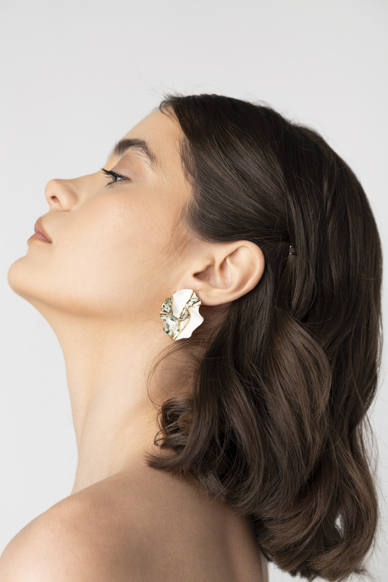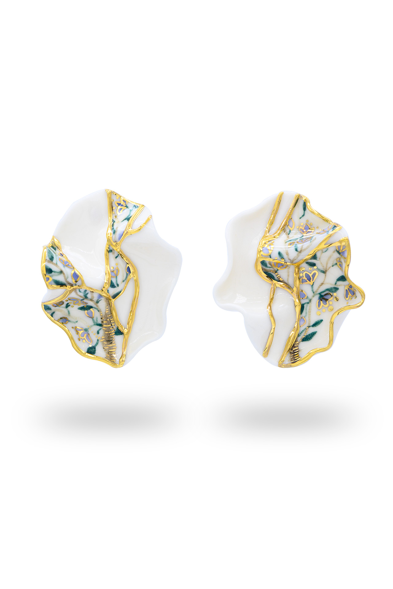 The Kintsugi Collection is a meditation on beauty reborn from fragility. Inspired by the Japanese art that embraces imperfection, each piece takes shape under the artist’s hand—sculpted and hand-painted, then ennobled with 24-karat gold. Every jewel carries within it a story—of healing, uniqueness, and the light that enters through the cracks to transform them into art.