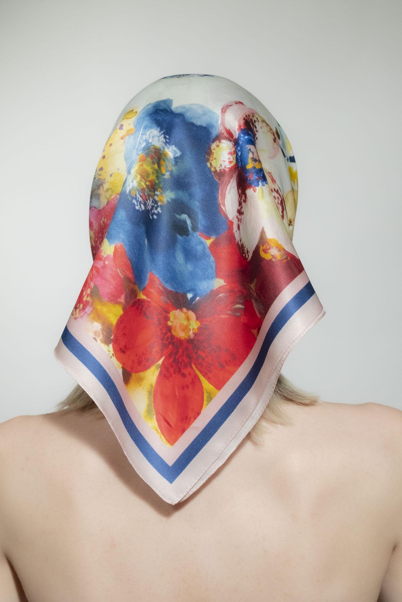 Keep the scarf in a cool, dry place. Use the iron with a textile layer on top on minimum mode. Chemical clean to preserve the beauty of your scarf for longer. Avoid directly spraying perfume or other chemicals.