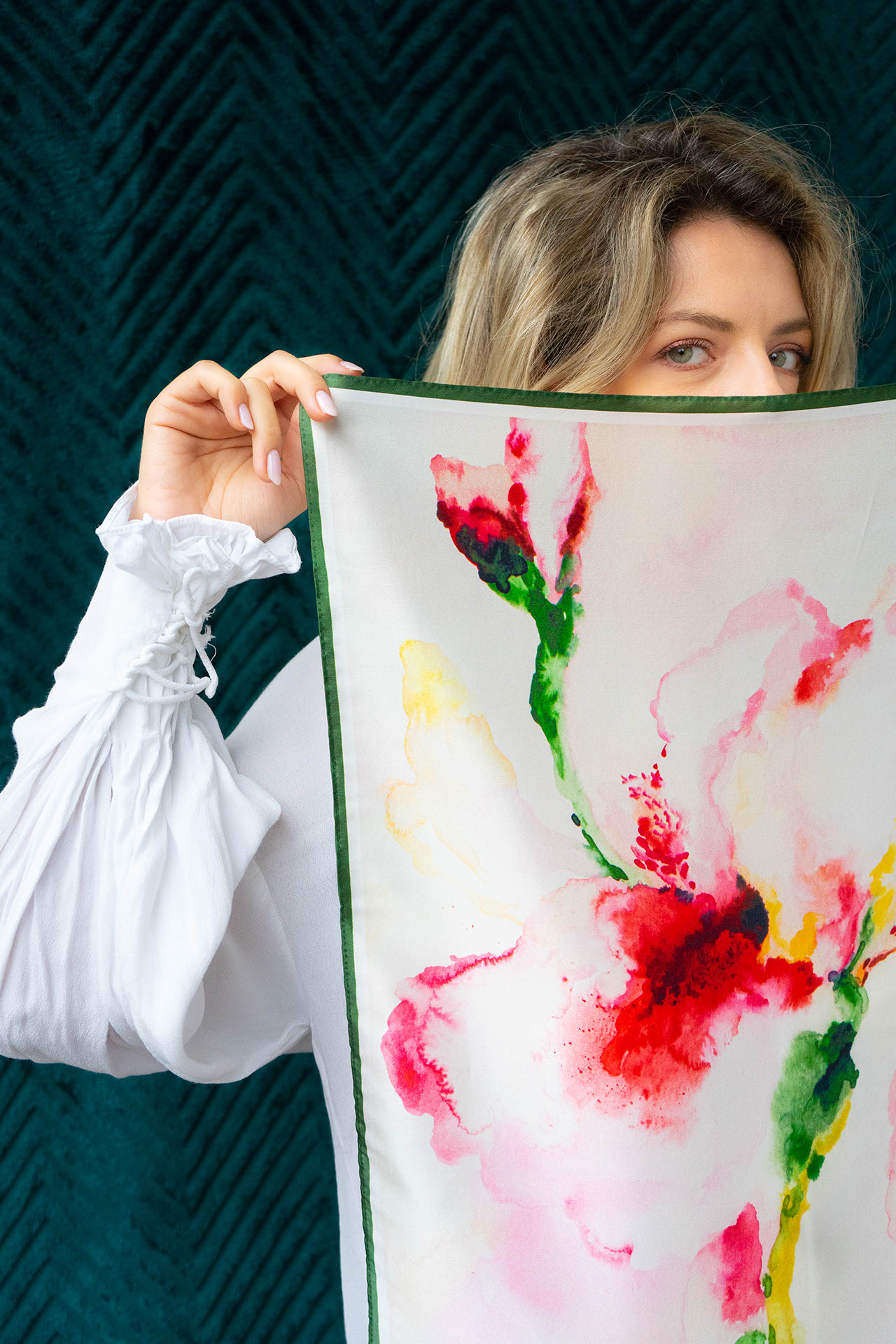 Keep the scarf in a cool, dry place. Use the iron with a textile layer on top on minimum mode. Chemical clean to preserve the beauty of your scarf for longer. Avoid directly spraying perfume or other chemicals.