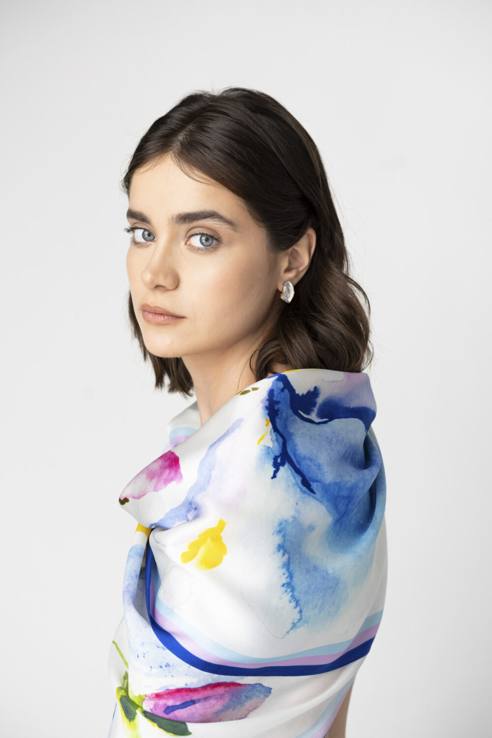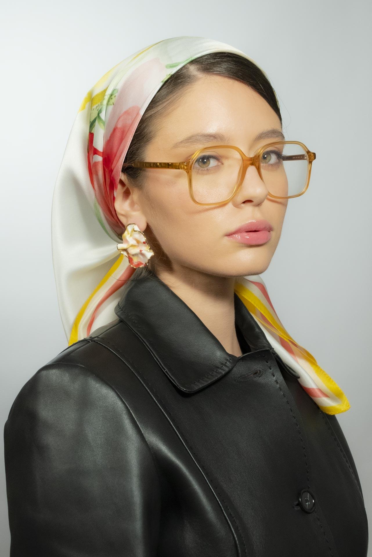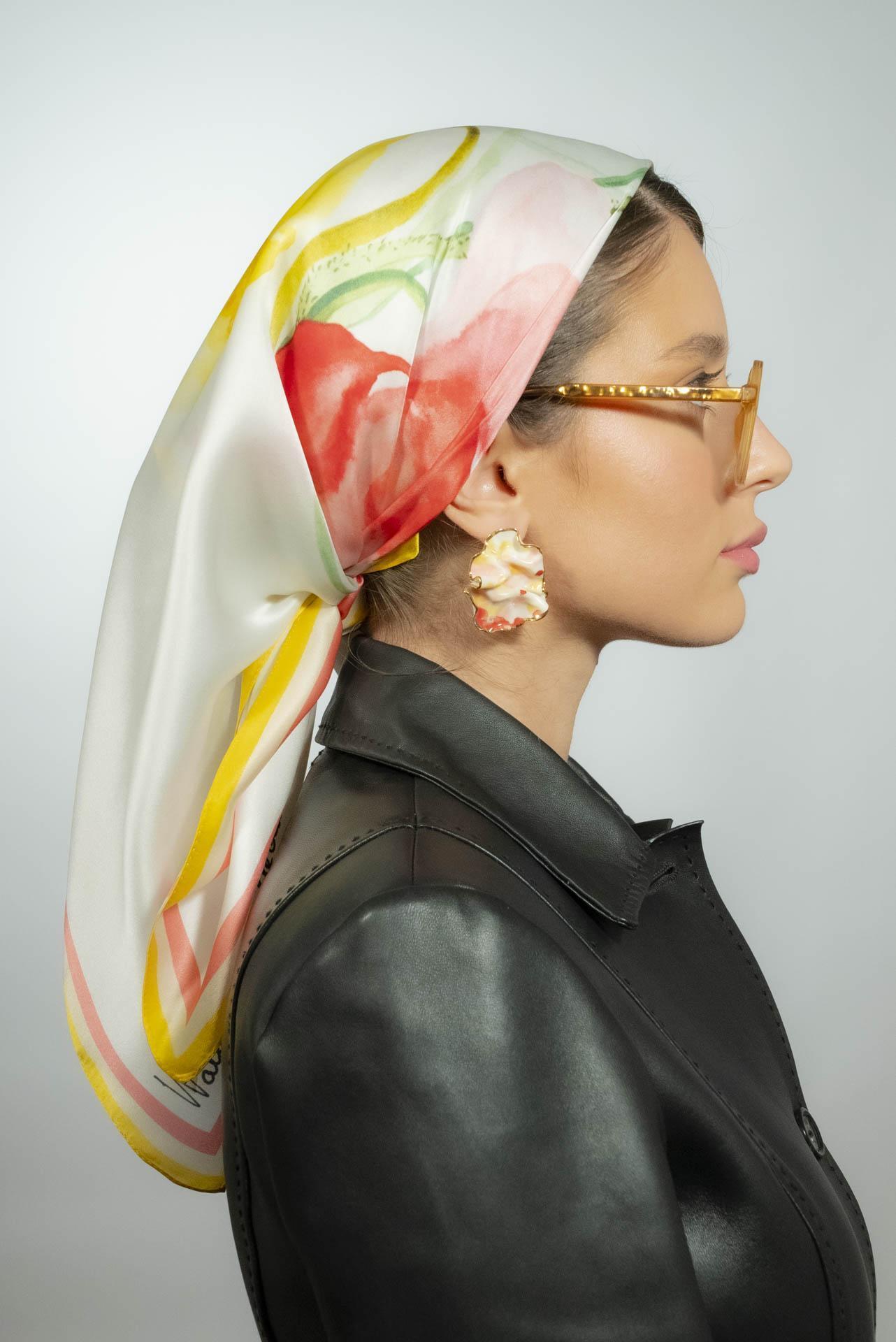 Keep the scarf in a cool, dry place. Use the iron with a textile layer on top on minimum mode. Chemical clean to preserve the beauty of your scarf for longer. Avoid directly spraying perfume or other chemicals.